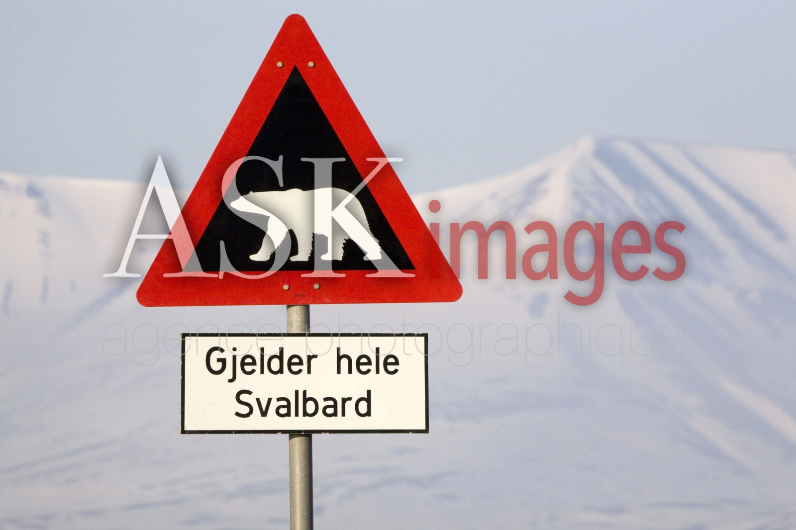 | Description | The iconic road sign with a white bear on a black background, and the mountains of Adventdalen in the distance. Spitsbergen. |