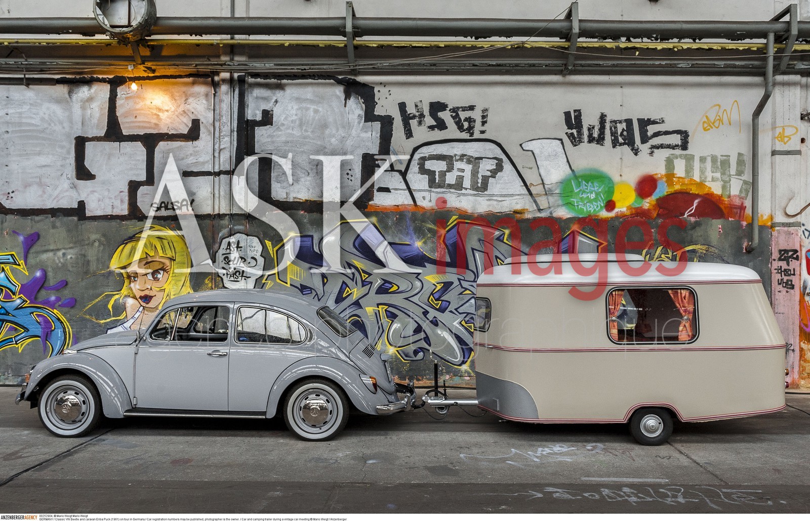 | Description | GERMANY / Classic VW Beetle and caravan Eriba Puck (1961) on tour in Germany / Car registration numbers may be published, photographer is the owner. / Car and camping trailer during a vintage car meeting ..© Mario Weigt / Anzenberger |