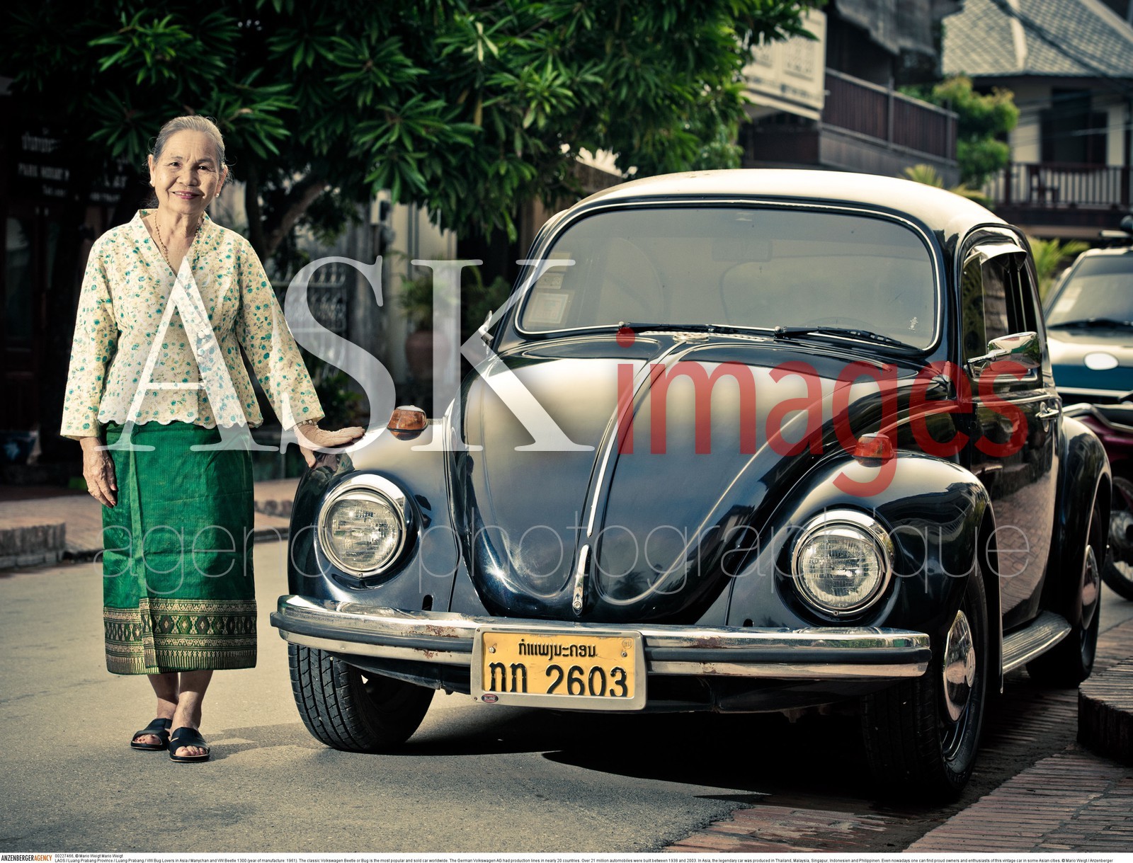 | Description | LAOS / Luang Prabang Province / Luang Prabang / VW Bug Lovers in Asia / Manychan and VW Beetle 1300 (year of manufacture: 1961)..The classic Volkswagen Beetle or Bug is the most popular and sold car worldwide. The German Volkswagen AG had production lines in nearly 20 countries. Over 21 million automobiles were built between 1938 and 2003. In Asia, the legendary car was produced in Thailand, Malaysia, Singapur, Indonesien and Philippinen. Even nowadays one can find proud owners and enthusiasts of this vintage car in some Asian cities. ..© Mario Weigt / Anzenberger.. |