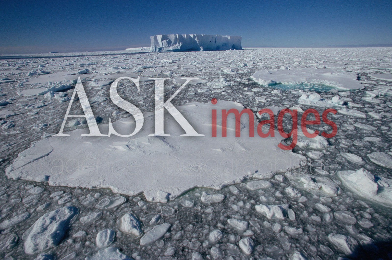 | Description | Ice floes in the Ross Sea, The ice between freezes in the cold nights, Iceberg on horizon, Antarctica. |