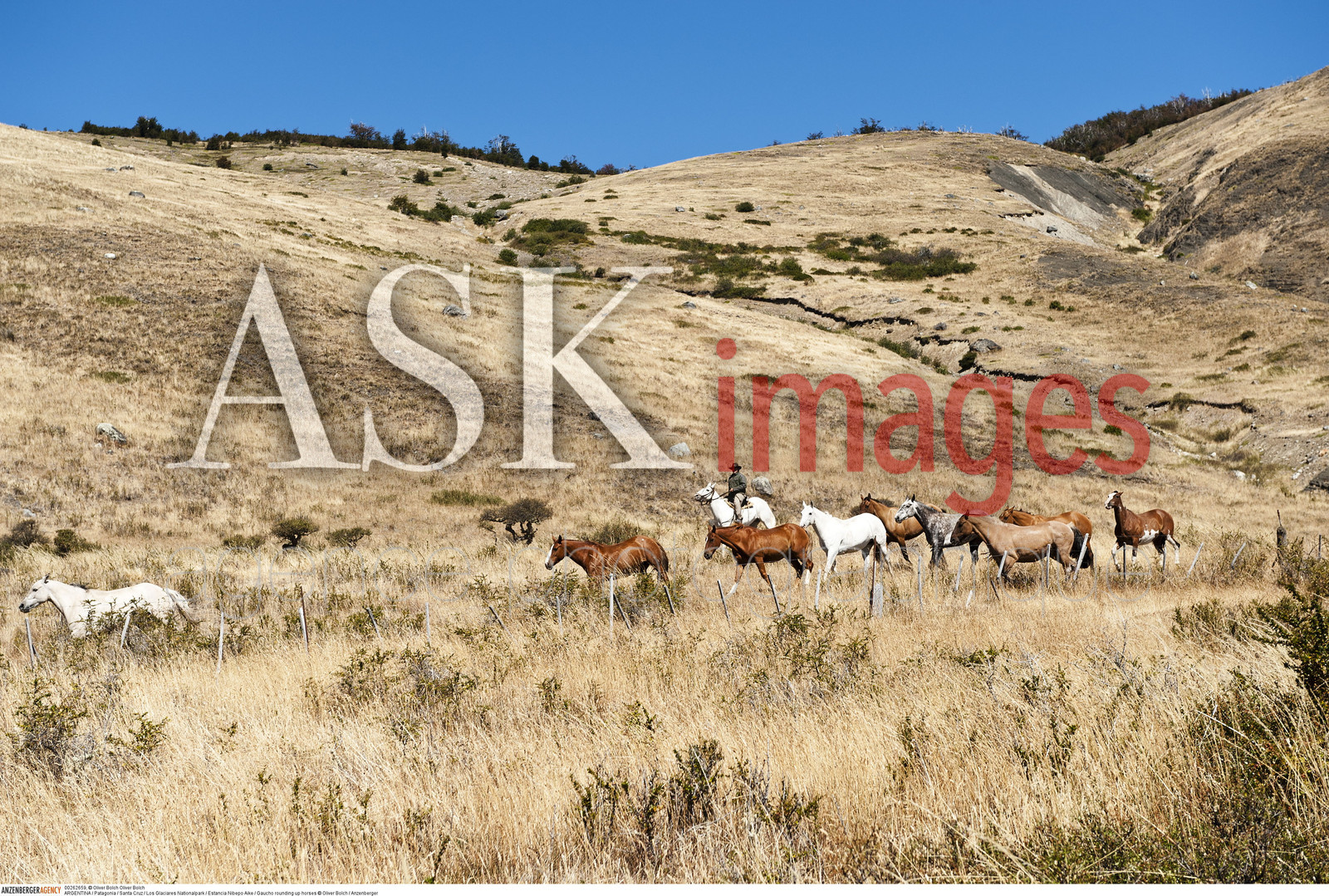 | Description | ARGENTINA / Patagonia / Santa Cruz / Los Glaciares Nationalpark / Estancia Nibepo Aike / Gaucho rounding up horses..© Oliver Bolch / Anzenberger |