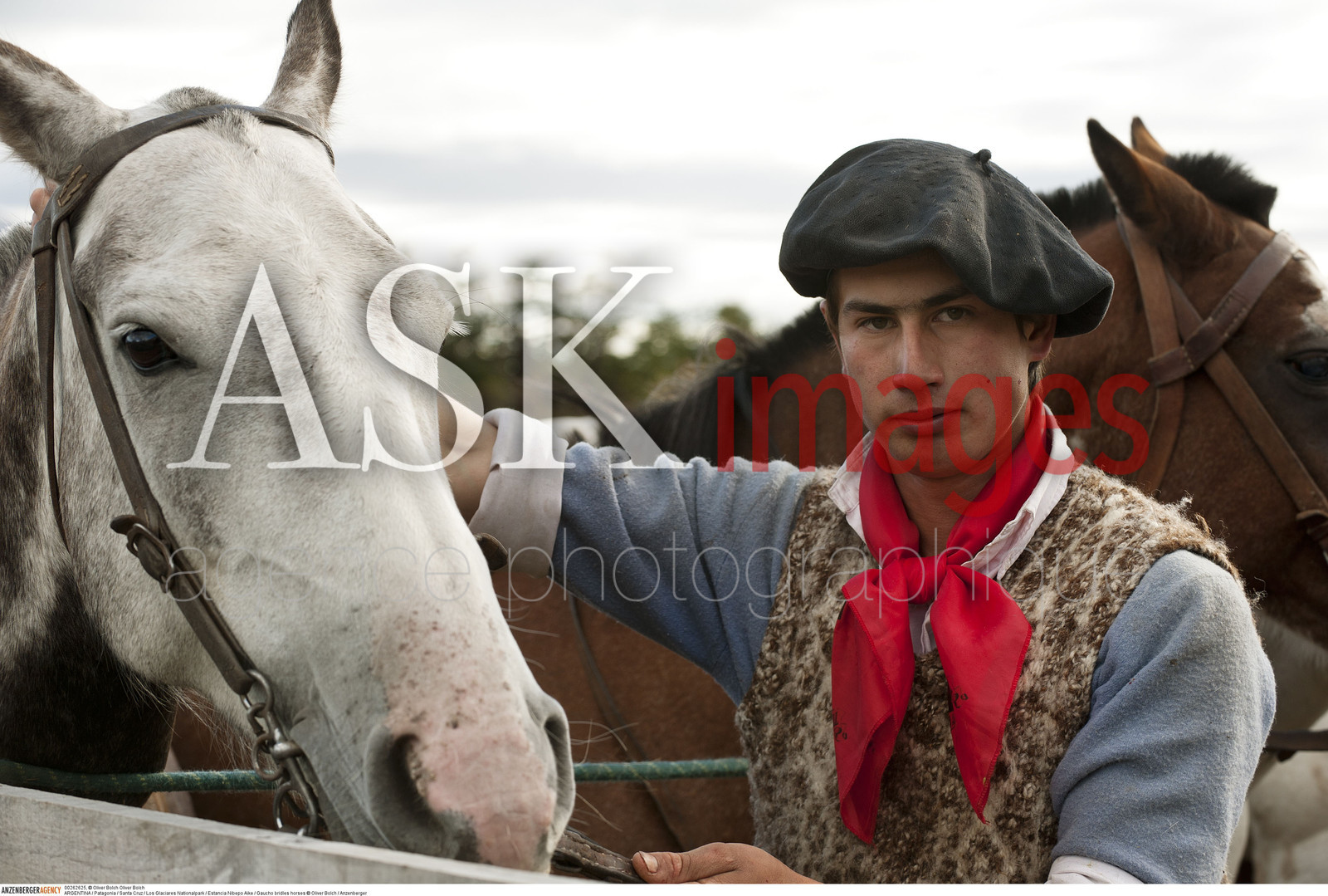 | Description | ARGENTINA / Patagonia / Santa Cruz / Los Glaciares Nationalpark / Estancia Nibepo Aike / Gaucho bridles horses ..© Oliver Bolch / Anzenberger |