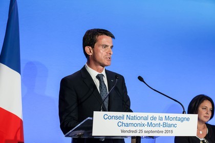 • French 1er Minister Manuel Valls during his trip to Chamonix for the Conseil National de la montagne