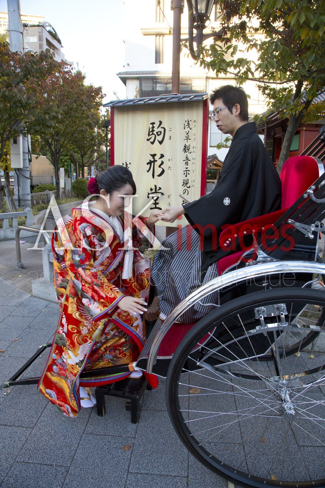 | Description | Traditional wedding, couple on rickshaw, Asakura, Tokyo |