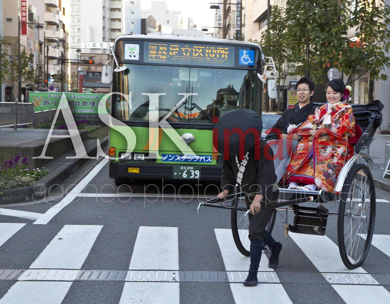 | Description | Traditional wedding, couple on rickshaw, Asakura, Tokyo |