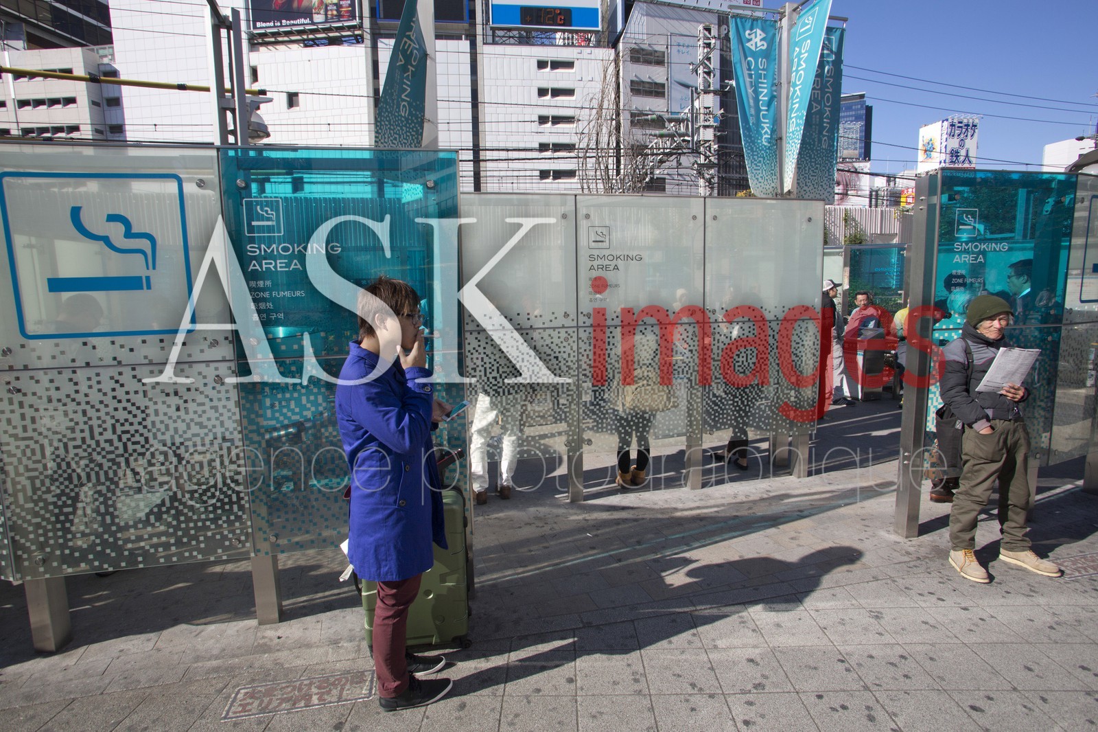People smoking in smoking area, Shinjuku, Tokyo