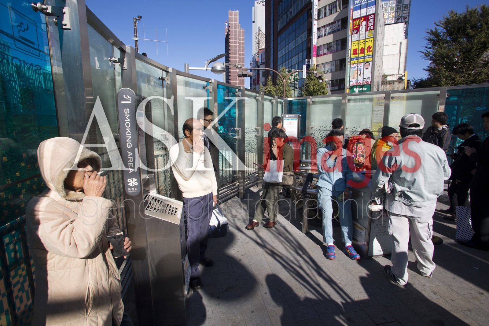 People smoking in smoking area, Shinjuku, Tokyo