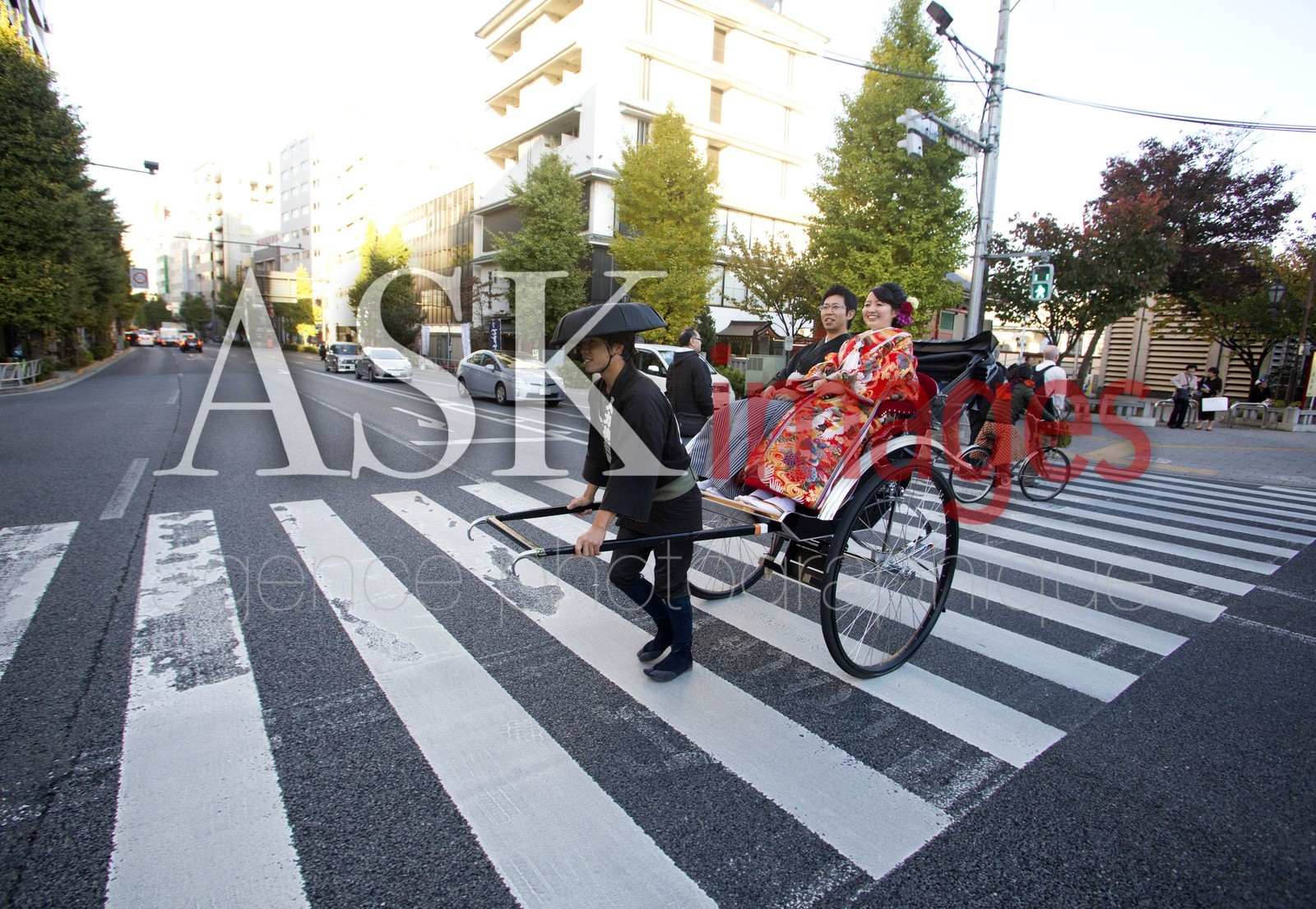 | Description | Traditional wedding, couple on rickshaw, Asakura, Tokyo |