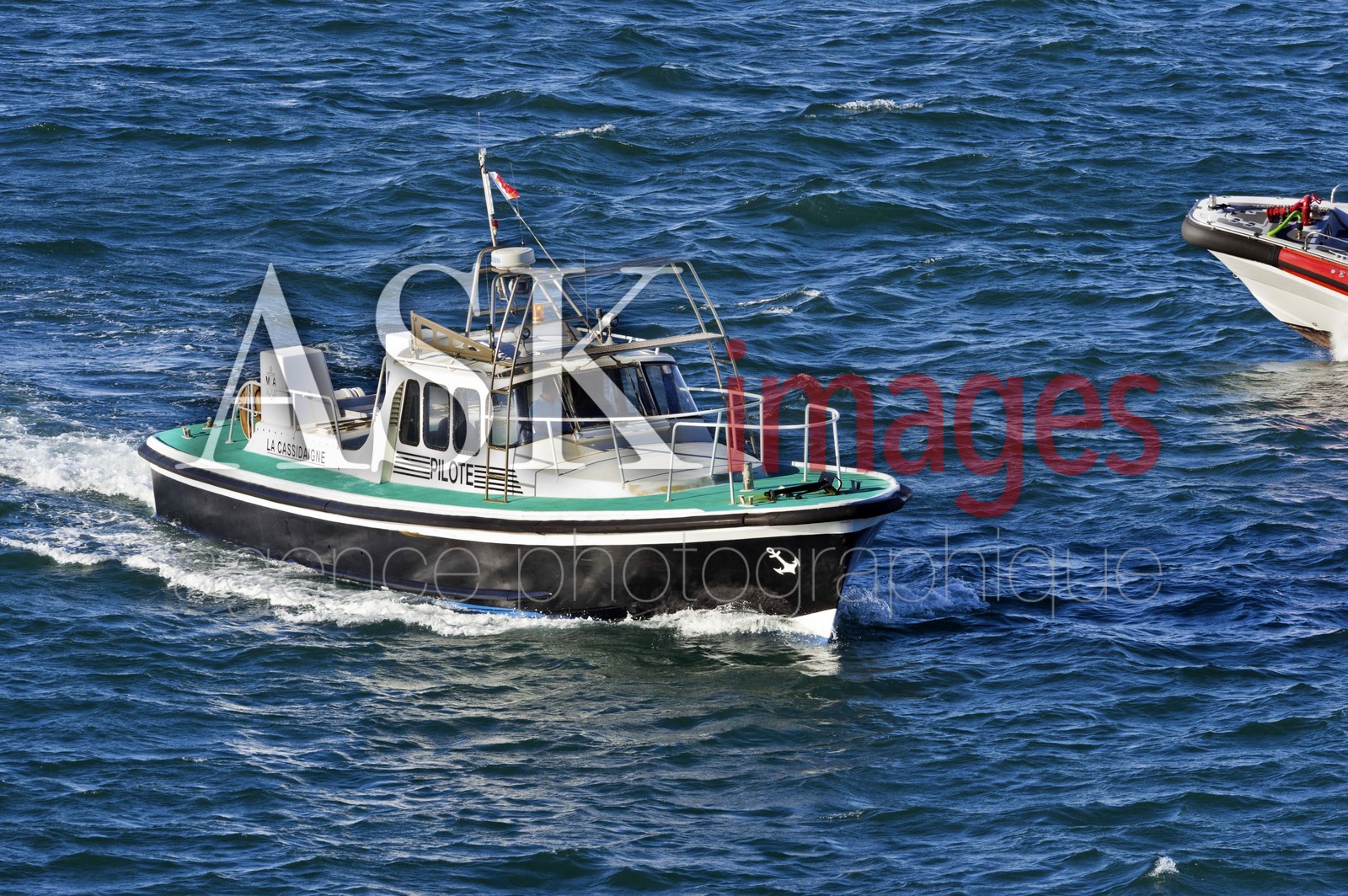 | Description | The speedboat with the driver of the ship in the Port Autonome de Marseille, Bouches du Rhone, France |
