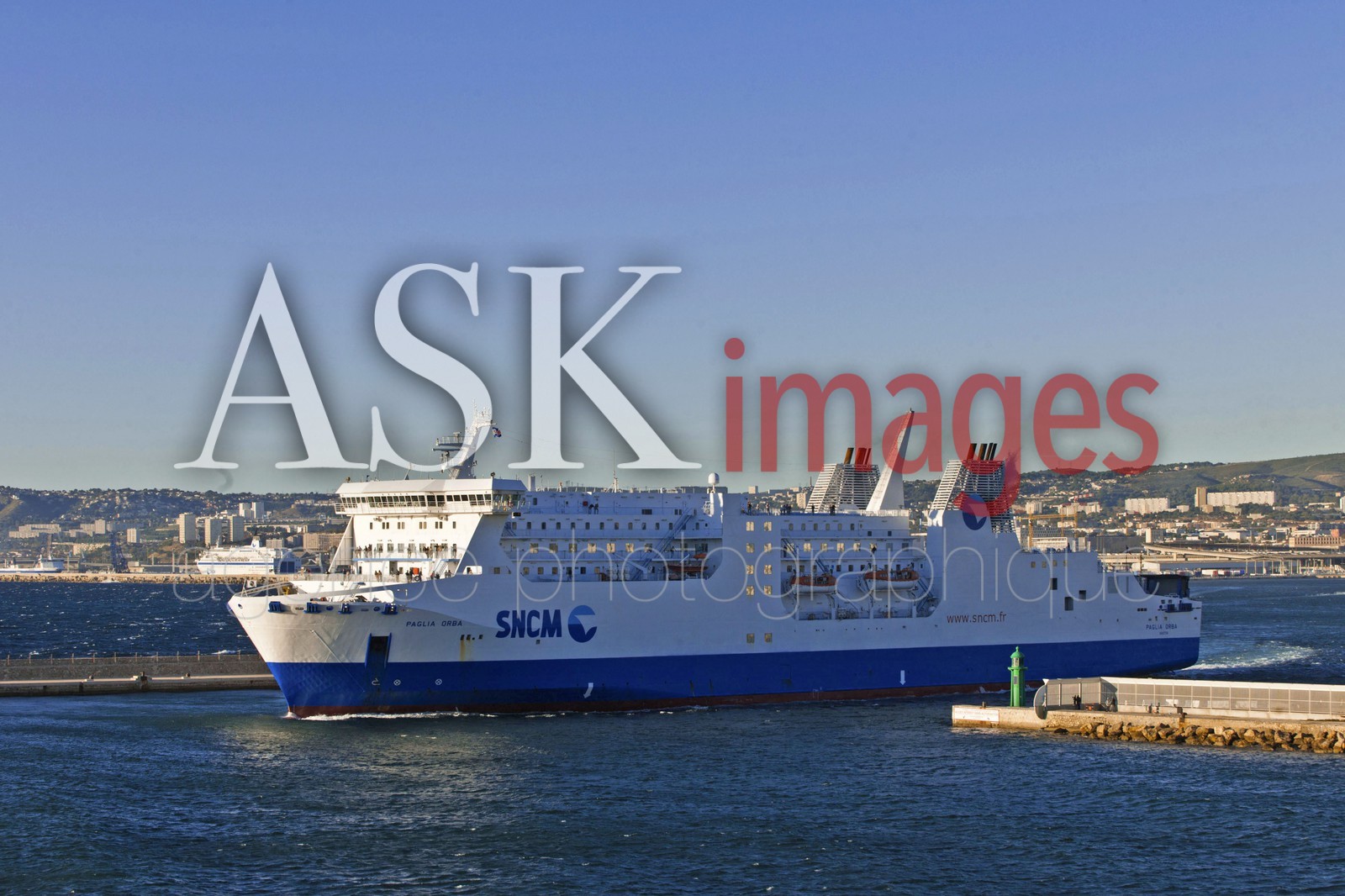| Description | The ship of the SNCM company leaving the Port Autonome de Marseille, Bouches du Rhone, France |