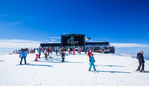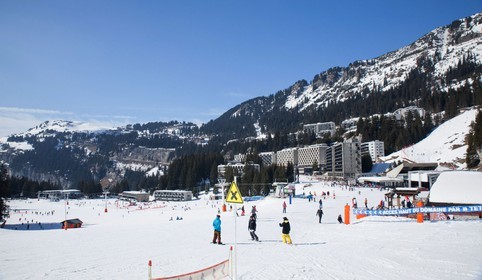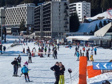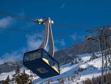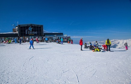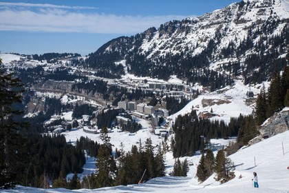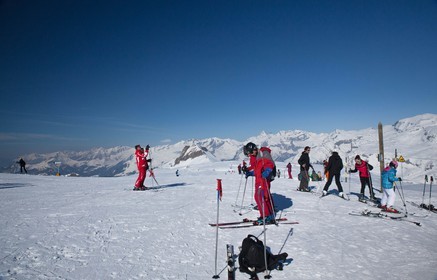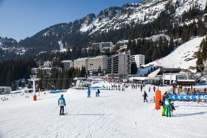• Haute-Savoie, Flaine, skiers at cablecar station