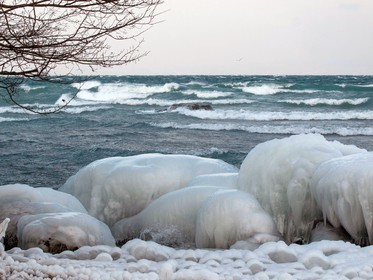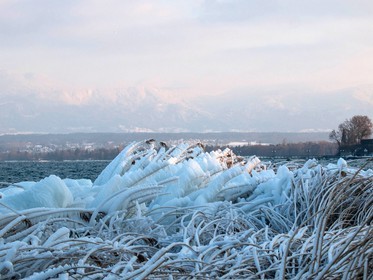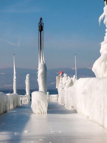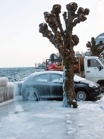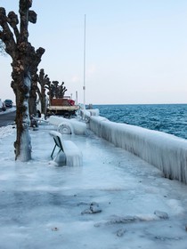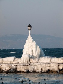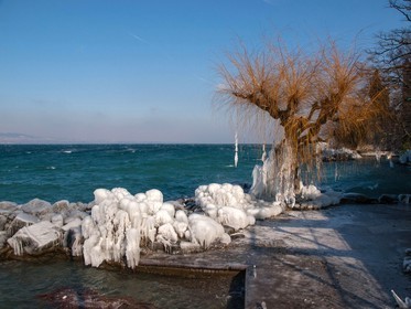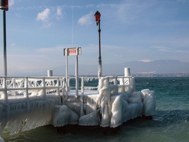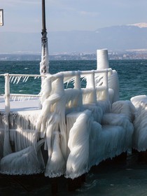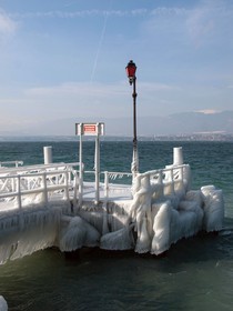 • FEVRIER SUR LE LAC LEMAN - température de - 18 -bise très forte créant des paysages de glace - Le 12 février 21012 - Photos : Michel COMPAGNON