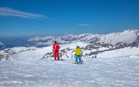 • Haute-Savoie, ESF (french ski school) teacher with child
