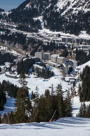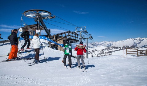 • Haute-Savoie, Flaine, skiers at chairlift terminal