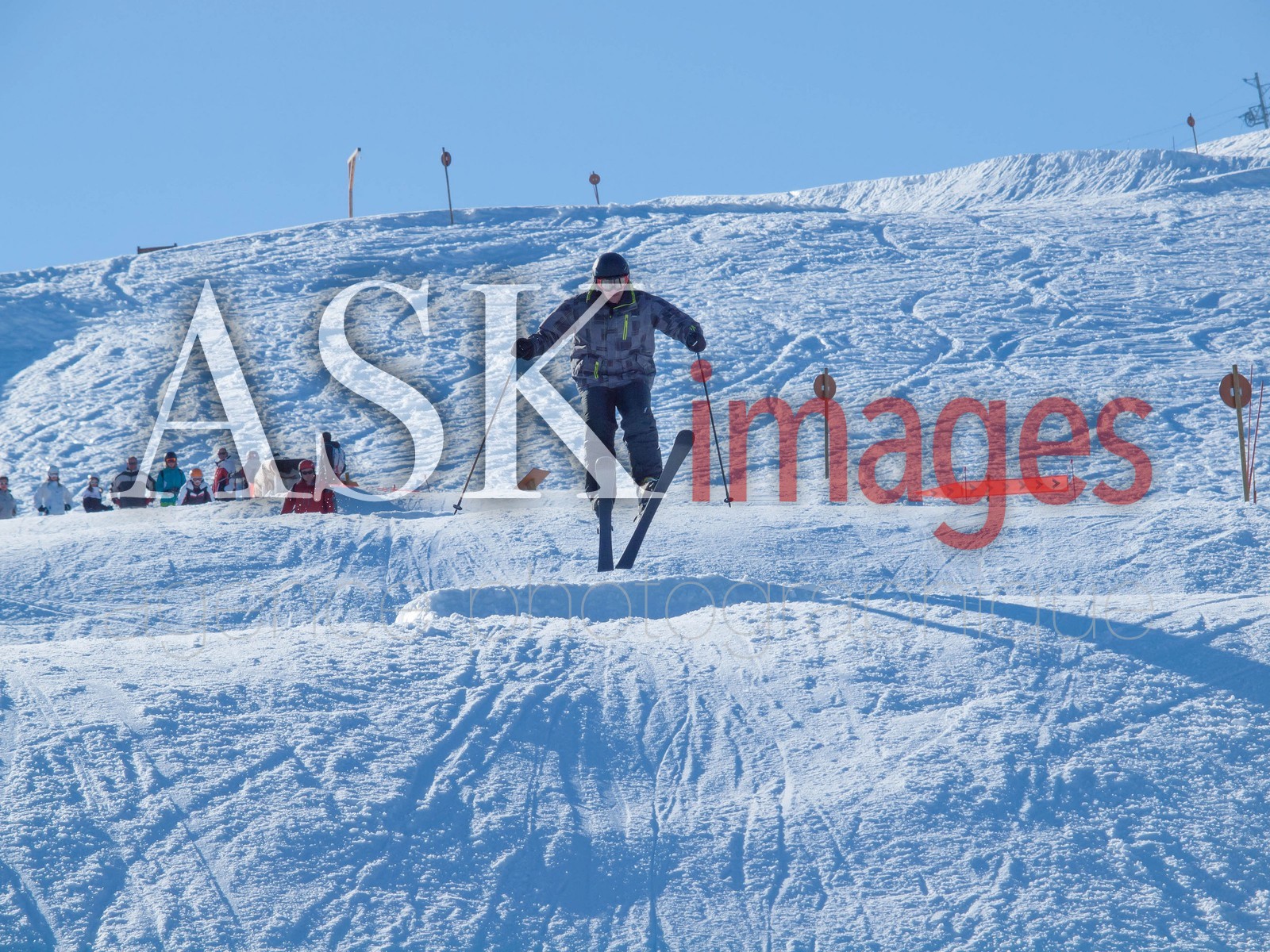 Contamines-Montjoie, skier jumping on snow when skiing.