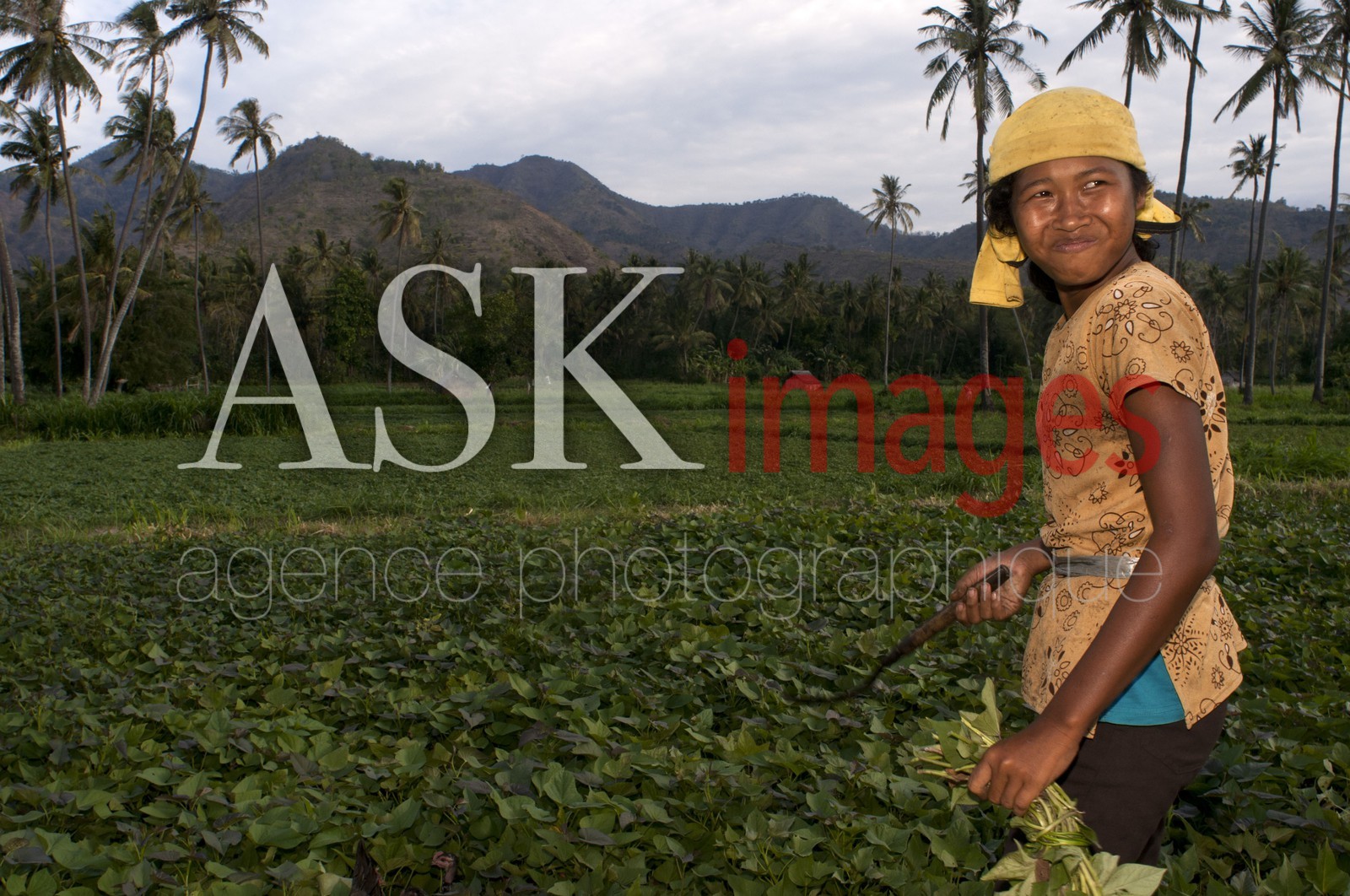 | Description | An girl collects harvest in a field near the fishing village of Amed East Bali culture. Amed is a long coastal strip of fishing villages in East Bali. Amed refers to a long stretch of coast running from the village of Cucik about 14 km eastwards incorporating the seven villages |