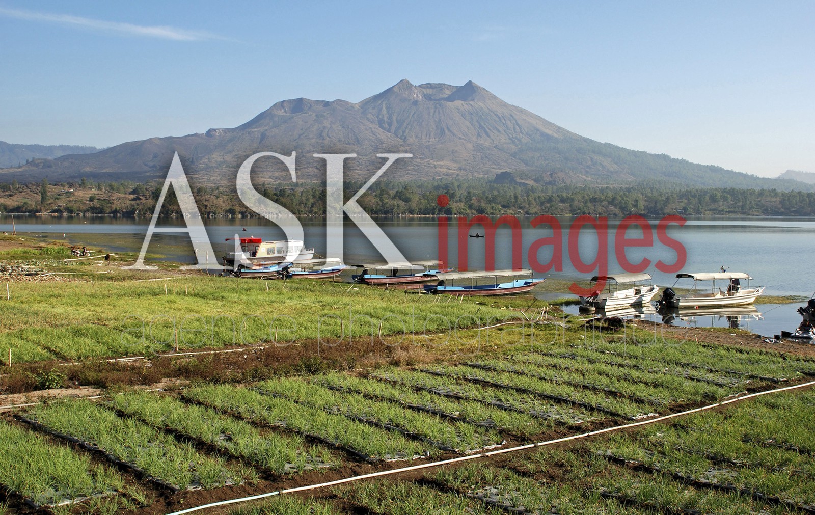 | Description | Onions grown on the irrigated shores of Lake Batur with the volcano Gunung Batur in the background with tourist boats tied up on lakeside Kedisan Penelokan Bali . |