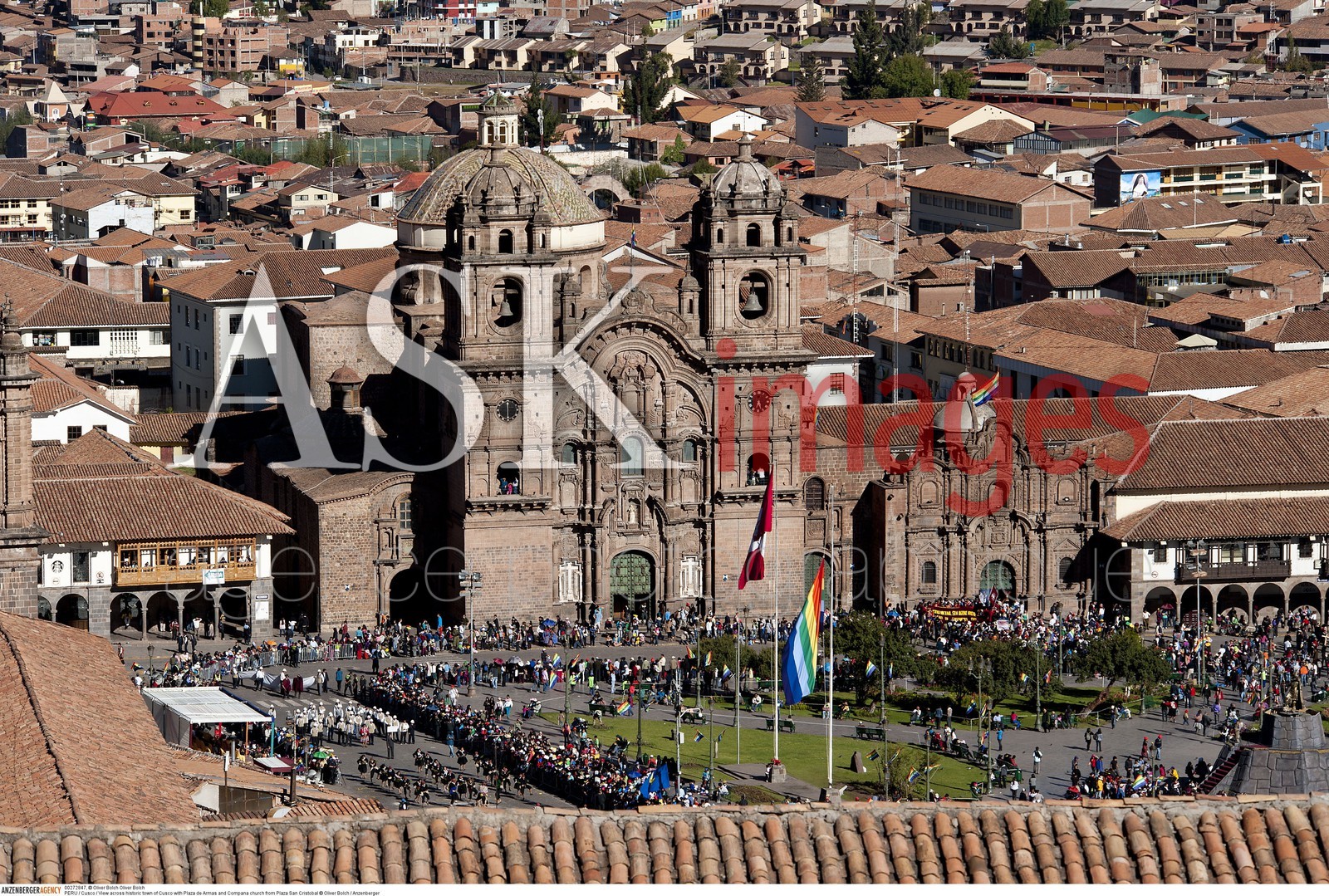 | Description | PERU / Cusco / View across historic town of Cusco with Plaza de Armas and Compana church from Plaza San Cristobal..© Oliver Bolch / Anzenberger |
