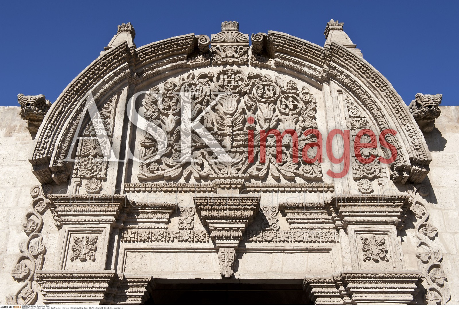 | Description | PERU / Arequipa / Historic town / Calle San Francisco / Entrance of historic building, Banco BBVA Continental..© Oliver Bolch / Anzenberger |