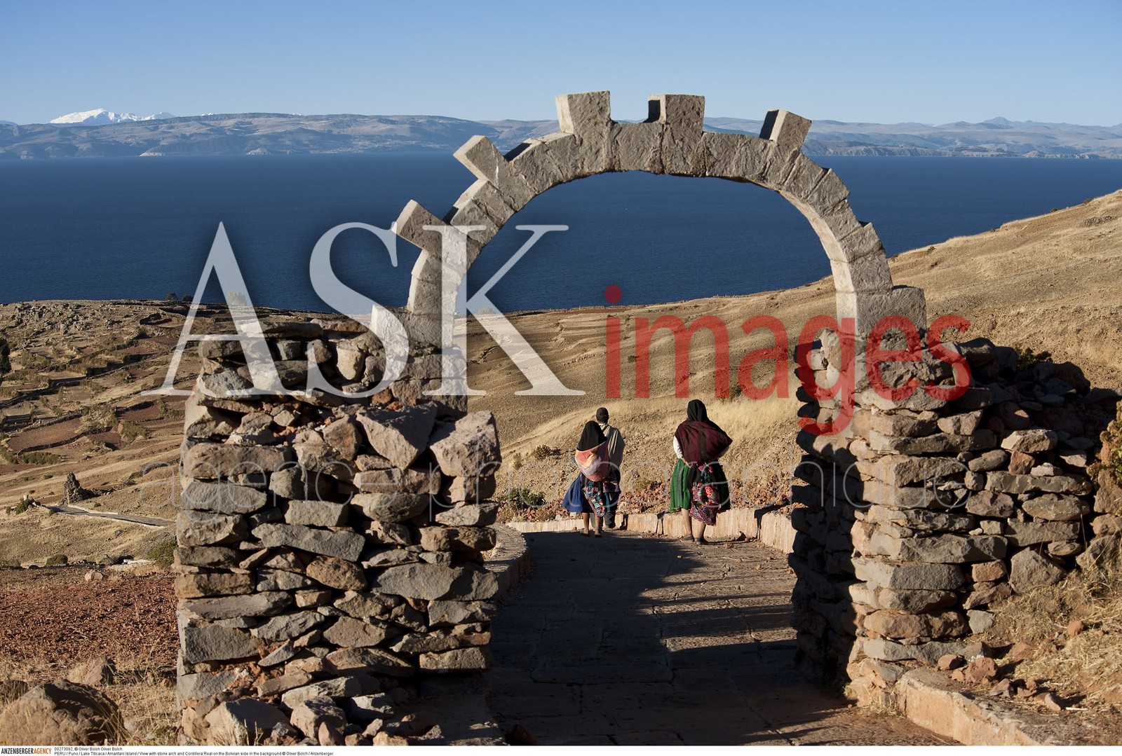 | Description | PERU / Puno / Lake Titicaca / Amantani Island / View with stone arch and Cordillera Real on the Bolivian side in the background..© Oliver Bolch / Anzenberger |