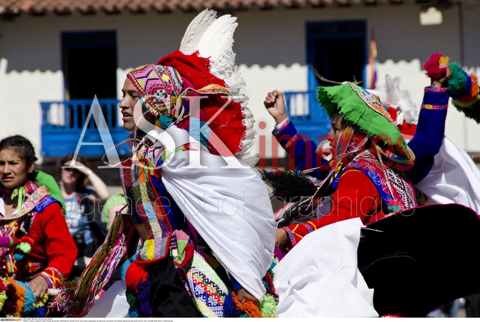 | Description | PERU / Cusco / Historic town / Plaza de Armas / Inti Raymi (Festival of the sun) / Dancing people at opening ceremony / the festival takes part the week before 24th June..© Oliver Bolch / Anzenberger |