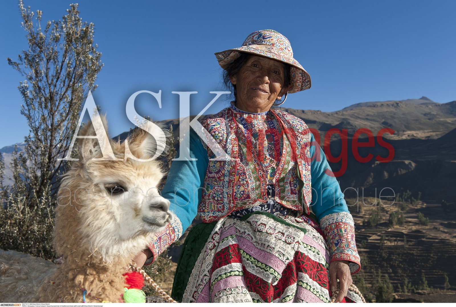 | Description | PERU / Arequipa / Colca Canyon / Quechua woman in traditional dress with Llama..© Oliver Bolch / Anzenberger |