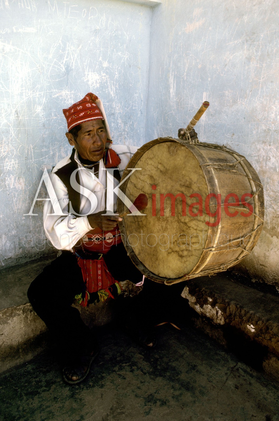 PERU / Puno / Lake Titicaca / Taquile Island / Quechua man with drum during Carnival