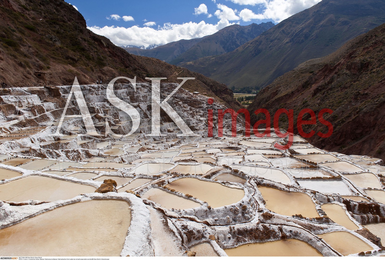 | Description | PERU / Cusco / Urubamba Valley / Maras / Salineras de Maras / Salt extraction from salty river at salt evaporation ponds..© Oliver Bolch / Anzenberger |