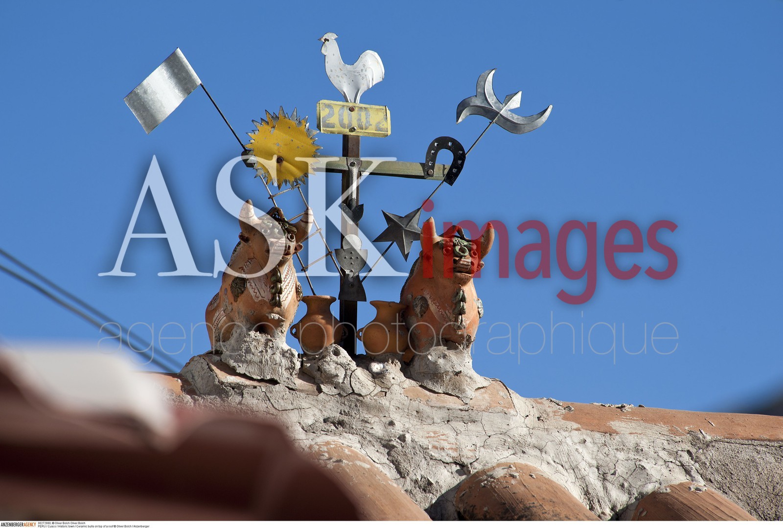 | Description | PERU / Cusco / Historic town / Ceramic bulls on top of a roof..© Oliver Bolch / Anzenberger |