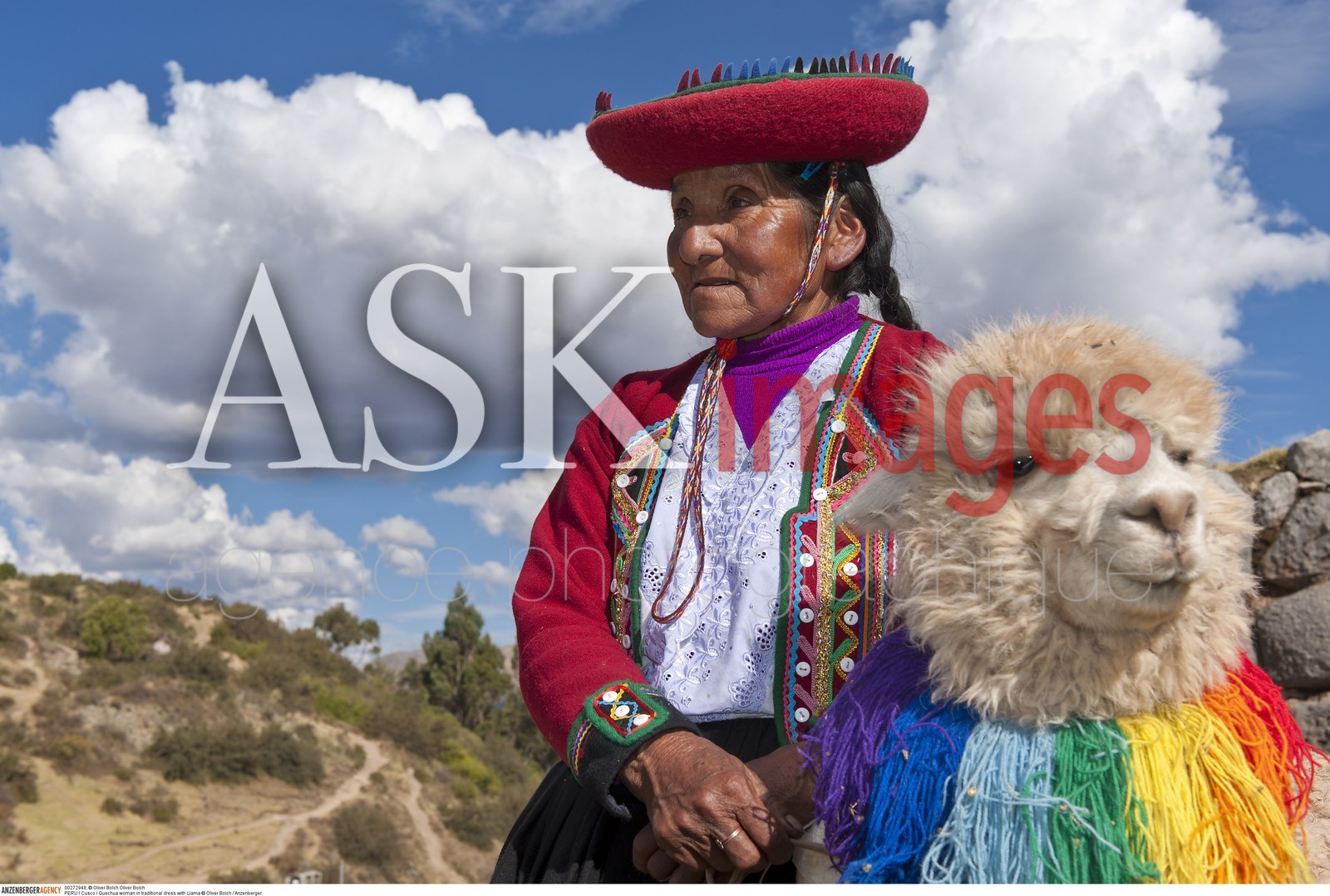 | Description | PERU / Cusco / Quechua woman in traditional dress with Llama..© Oliver Bolch / Anzenberger |