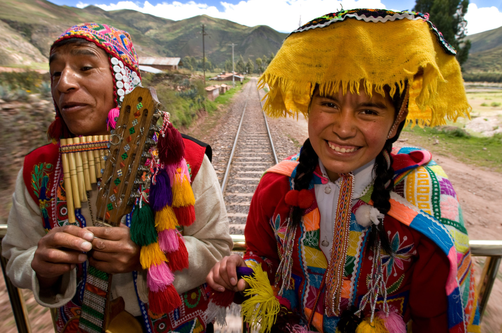 | Description | Andean Explorer, luxury train from Cusco to Puno, Train inside, Musicians and dancers in traditional costumes ride on beautify the Andean Explorer train Orient Express which runs between Cuzco and Puno. |