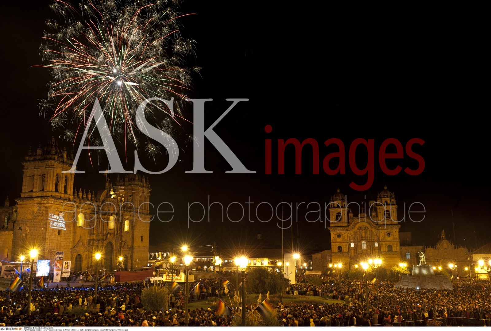 | Description | PERU / Cusco / Historic town / Fireworks at Plaza de Armas with Cusco Cathedral and Compana church..© Oliver Bolch / Anzenberger |
