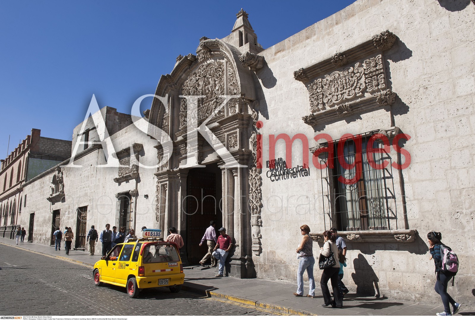 | Description | PERU / Arequipa / Historic town / Calle San Francisco / Entrance of historic building, Banco BBVA Continental..© Oliver Bolch / Anzenberger |