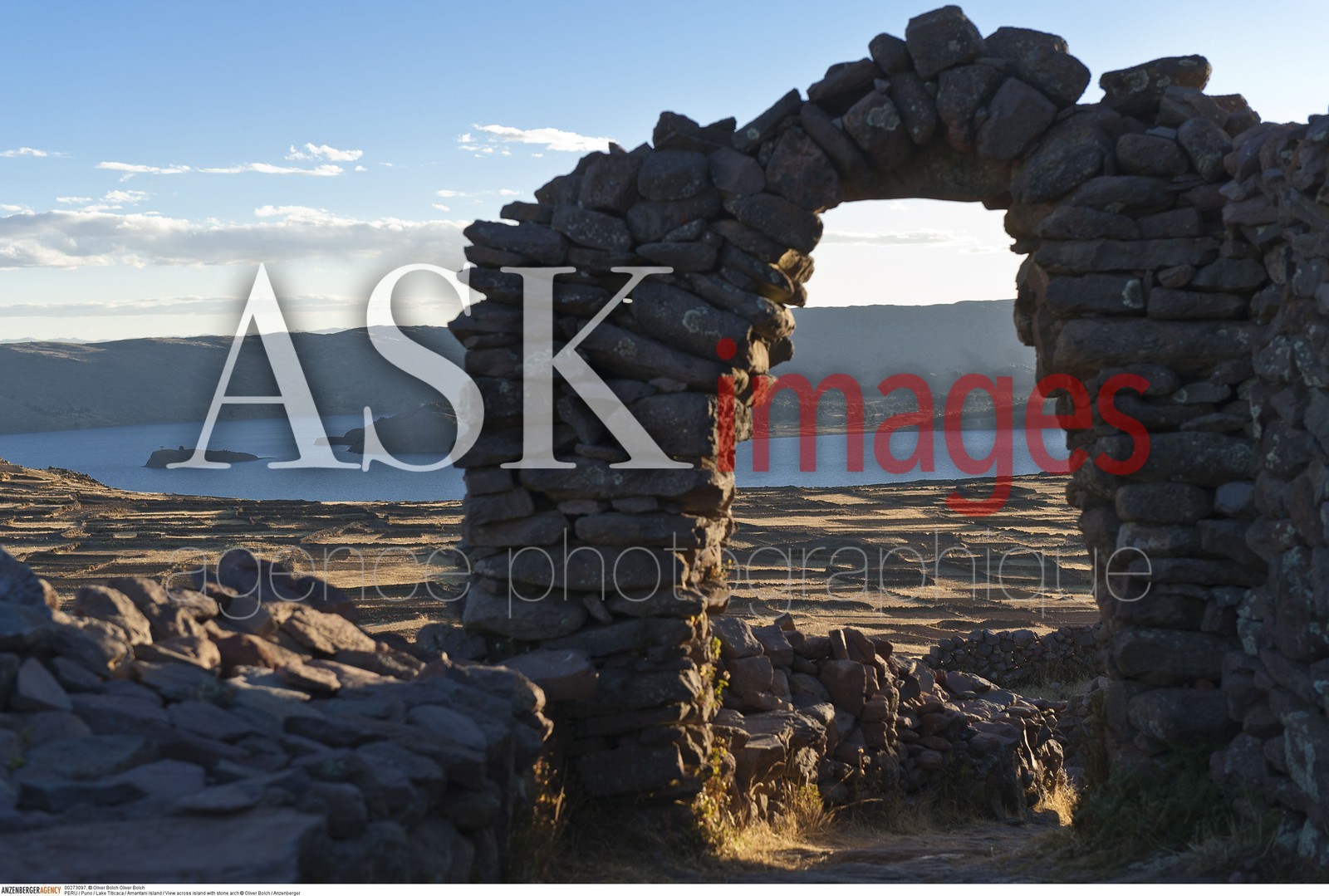 | Description | PERU / Puno / Lake Titicaca / Amantani Island / View across island with stone arch..© Oliver Bolch / Anzenberger |
