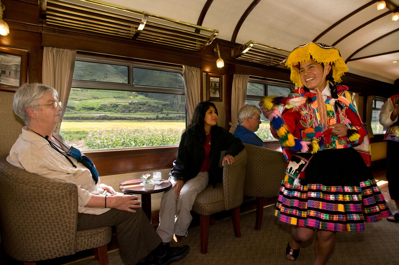 | Description | Andean Explorer, luxury train from Cusco to Puno, Train inside, Musicians and dancers in traditional costumes ride on beautify the Andean Explorer train Orient Express which runs between Cuzco and Puno. |