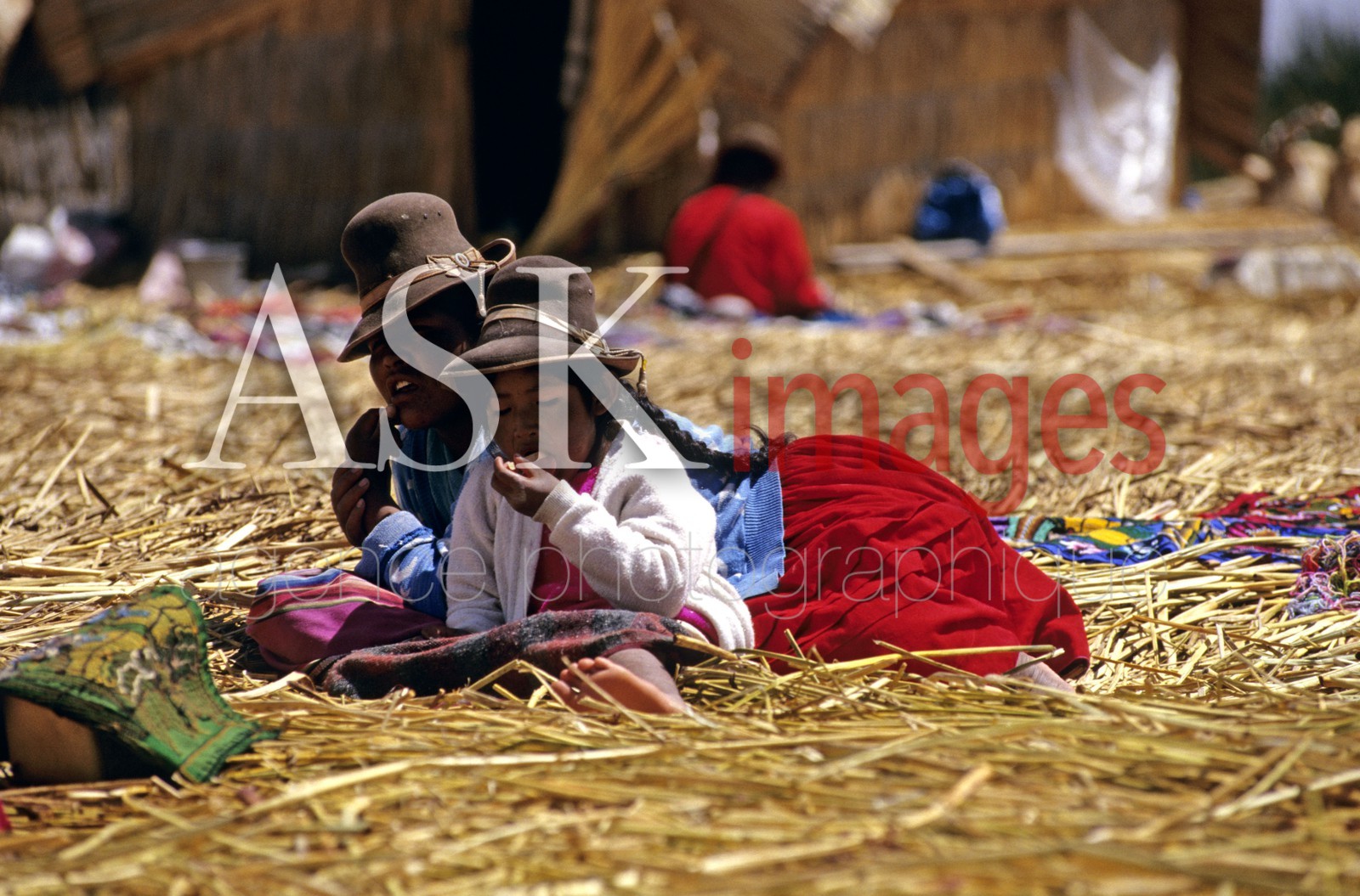 | Description | PERU / Puno / Lake Titicaca / Floating islands of the Uros / Uro girl with her mother |