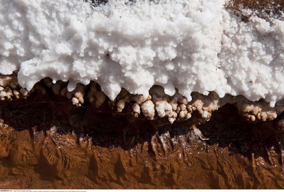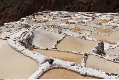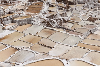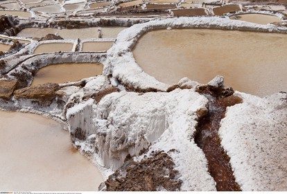 PERU / Cusco / Urubamba Valley / Maras / Salineras de Maras / Salt extraction from salty river at salt evaporation ponds / Salty detail..© Oliver Bolch / Anzenberger Perou *** Peru