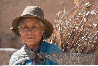 PERU / Cusco / Raqchi / Old woman carrying basket with grain..© Oliver Bolch / Anzenberger Perou *** Peru