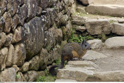 PERU / Cusco / Urubamba Valley / Viscacha (Lagidium viscacia) amongst the Inca ruins of Machu Picchu..© Oliver Bolch / Anzenberger Perou *** Peru