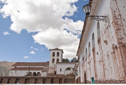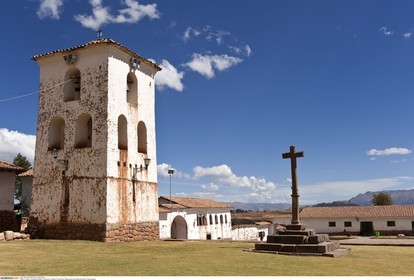 PERU / Cusco / Urubamba Valley / Chinchero / Plaza de Chinchero / Monserrat church..© Oliver Bolch / Anzenberger Perou *** Peru