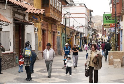 PERU / Cusco / Urubamba Valley / Ollantaytambo / Street with restaurants..© Oliver Bolch / Anzenberger Perou *** Peru
