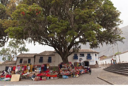 PERU / Cusco / Andahuaylillas / Colonial village / Souvenir stand at Plaza de Armas..© Oliver Bolch / Anzenberger Perou *** Peru