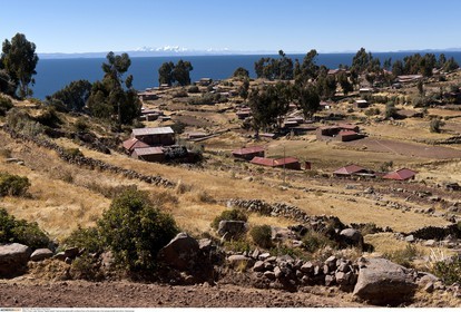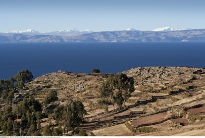 PERU / Puno / Lake Titicaca / Amantani Island / View across island with Cordillera Real on the Bolivian side in the background..© Oliver Bolch / Anzenberger Perou *** Peru