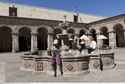 PERU / Arequipa / Historic town / Church of the Company / Cloistered courtyard with fountain..© Oliver Bolch / Anzenberger Perou *** Peru