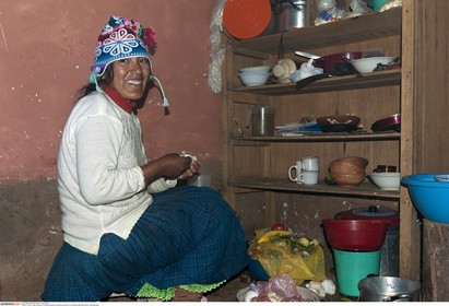 PERU / Puno / Lake Titicaca / Amantani Island / Quechua woman in her kitchen..© Oliver Bolch / Anzenberger Perou *** Peru