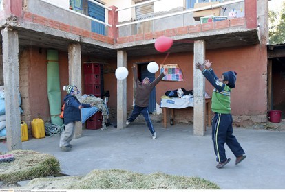 PERU / Puno / Lake Titicaca / Floating islands of the Uros / Uro children in their hut..© Oliver Bolch / Anzenberger Perou *** Peru