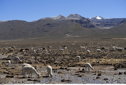 PERU / Arequipa / Altiplano near Chivay with flock of Llamas..© Oliver Bolch / Anzenberger Perou *** Peru
