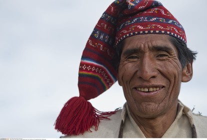 PERU / Puno / Lake Titicaca / Floating islands of the Uros / Portait of an Uro man..© Oliver Bolch / Anzenberger Perou *** Peru