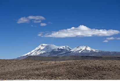 PERU / Arequipa / Patampa Pass / Mirador Valle de los Volcanes / Ampato volcano (6288 m) and Sabancaya volcano (5976 m)..© Oliver Bolch / Anzenberger Perou *** Peru