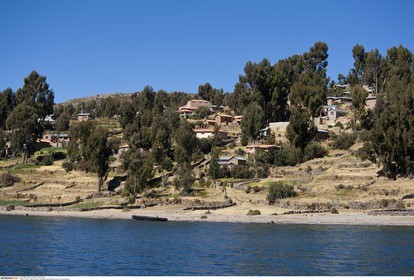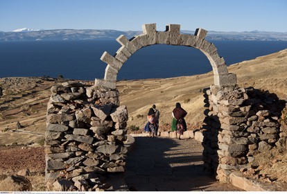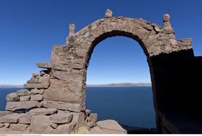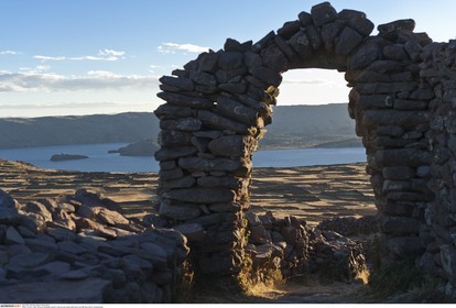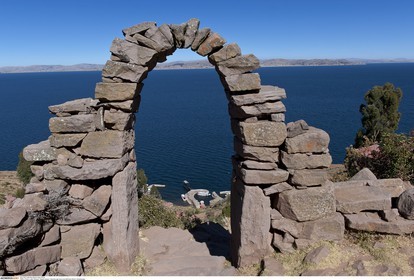 PERU / Puno / Lake Titicaca / Amantani Island / View across island with stone arch..© Oliver Bolch / Anzenberger Perou *** Peru